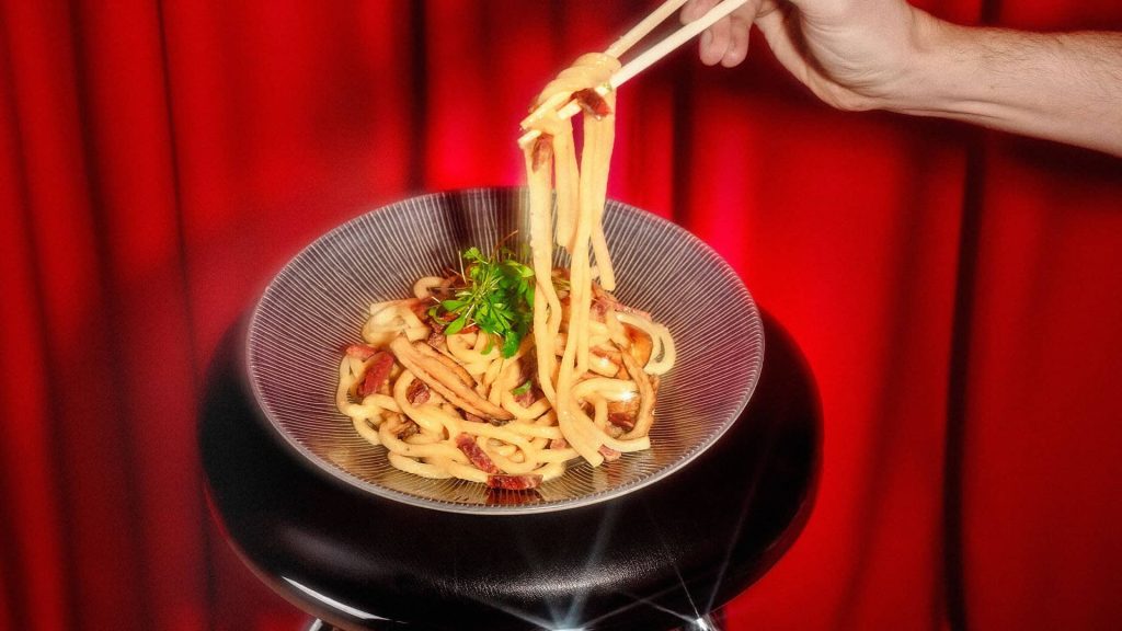 Meet Udonara – part Asian, part Italian, and full of flavour. This indulgent dish features thick udon noodles tossed in a rich and creamy sauce, finished with crispy vegan bacon, king oyster mushrooms and coriander cress. Thick, saucy and lightly smoky, it’s a combination that surprises in all the right ways.