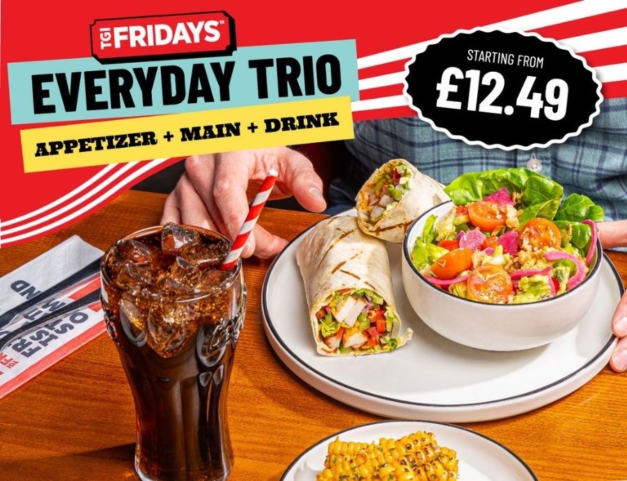 Introducing the TGI Fridays Everyday Trio Menu, choose an Appetizer, Main and a Soda for £12.49!